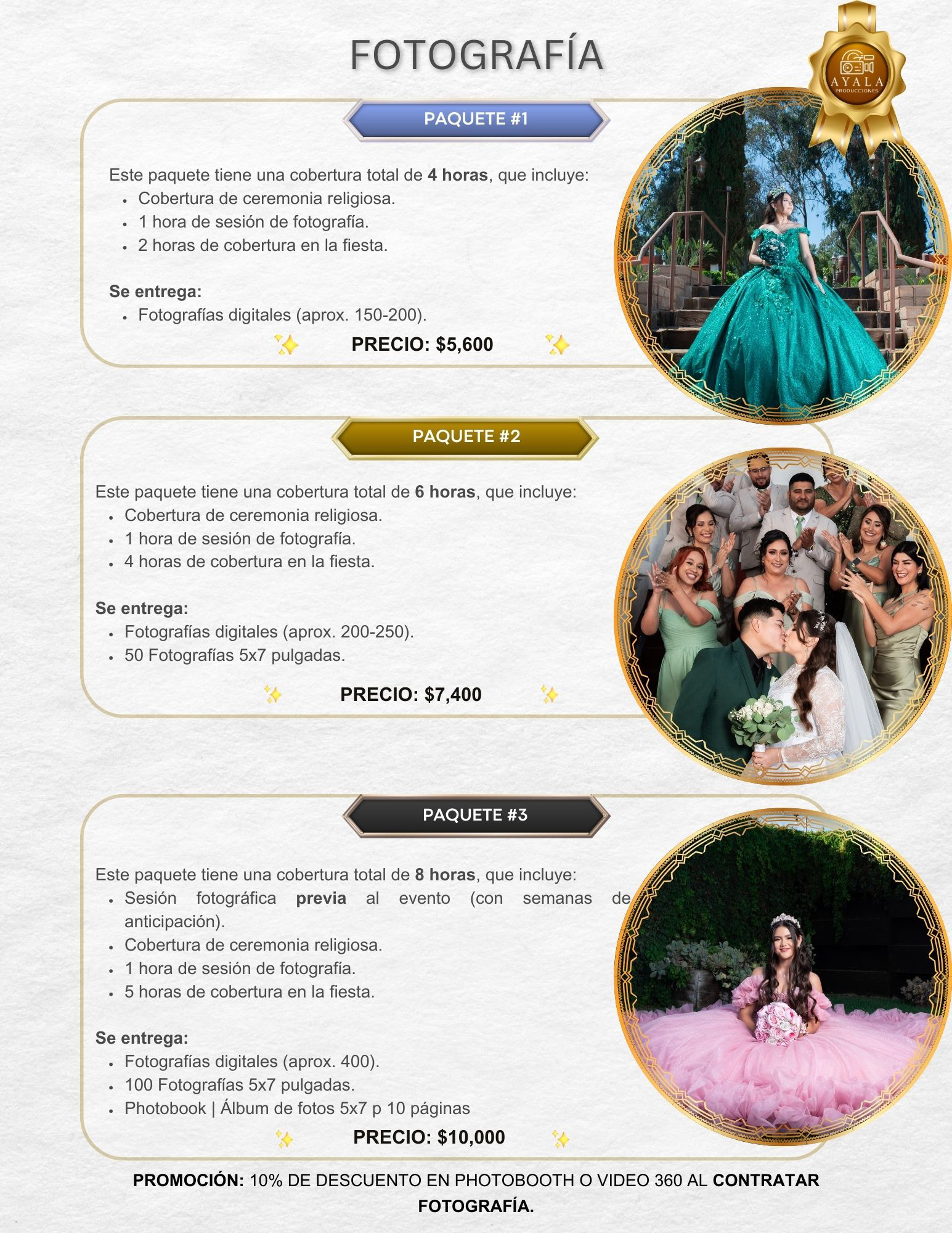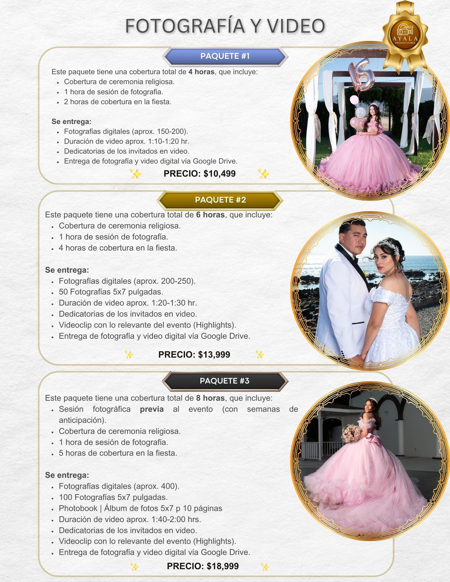 Prepárate para una experiencia increíble con fotos que te encantarán, videos que te emocionarán y servicios que harán que tu fiesta sea inolvidable.